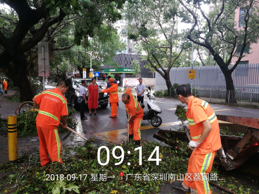 9月16日,特大台风“山竹”袭击了广东大部分地区,特别是深圳地区,尤为严重。太阳集团人在“山竹”台风前后展开清洁大行动,并连夜疏通清理道路,保障人们生活的正常出行和安全。同时响应主管单位和各地街道办的统一部署,全力开展台风灾害清理工作。太阳集团总经理亲临现场,指挥员工快速疏通重灾区的道路清理。 |