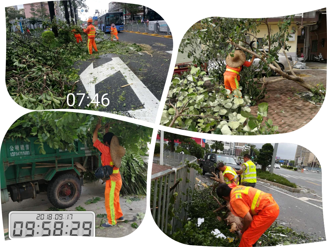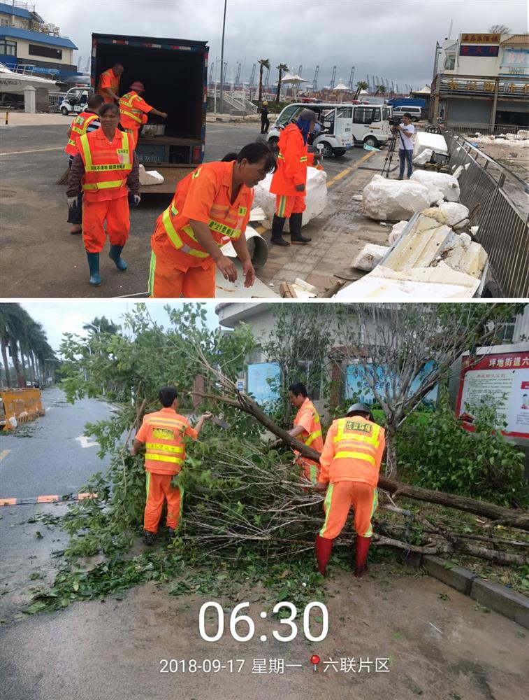 此次台风抢险中,太阳集团人团结一心,充分发扬吃苦耐劳、不怕脏不怕累的环卫精神,全体总动员,投入到这次特大的台风抢险及清理中。 |