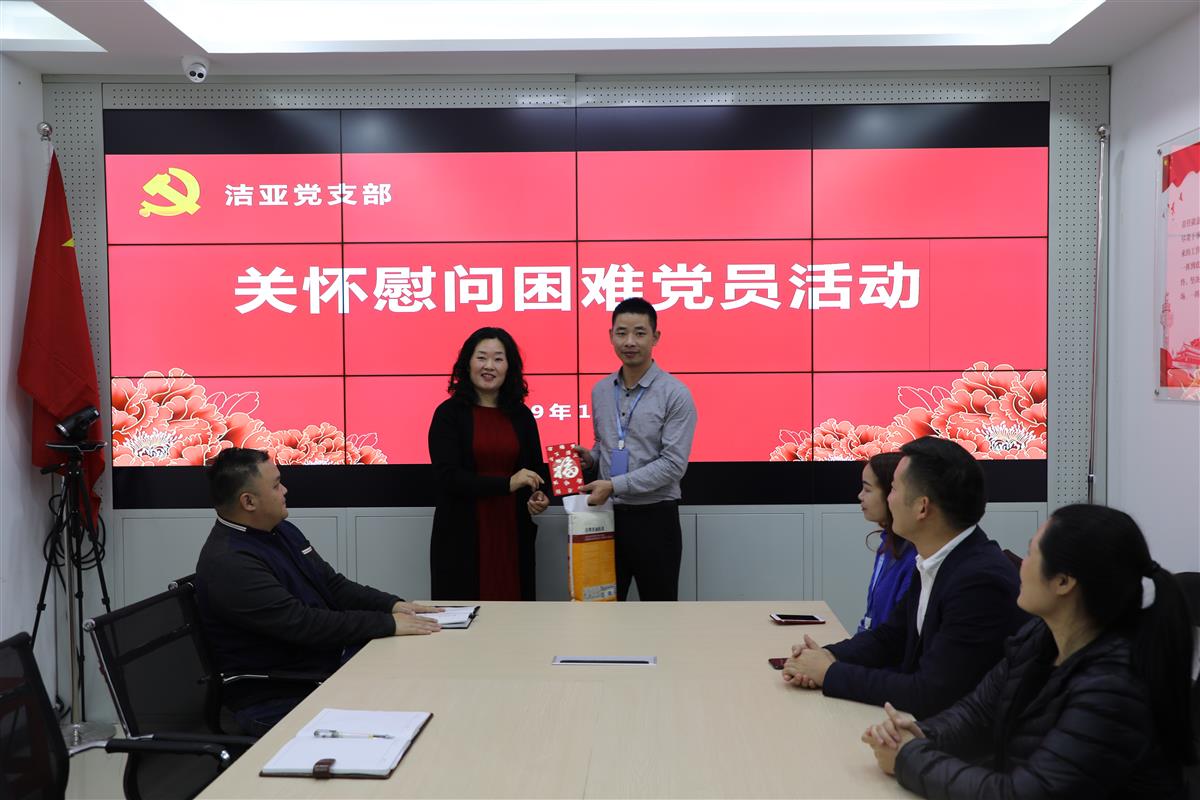 太阳集团党支部一直重视党建工作,用党的思想理论武装企业,指导企业发展,把关心党员同志的工作、生活看做是党建的重要部分,为把这份关怀落到实处,朱总今天在公司会议室为困难党员王海龙同志发放了慰问金和粮油用品,王海龙是太阳集团安全部专员,曾在部队入党,有4个儿女,均在老家读书,由王海龙妻子全职在家带孩子,全家就靠他一个人工作养家糊口,生活压力较大,是太阳集团比较困难的党员。朱总说,我们要关心爱护党员,特别是生活困难党员,要及时了解他们的所需所盼,积极为他们办实事、解难题,切实把党组织的关怀和温暖送到他们的心坎上。要加强基层党组织建设,充分发挥党支部的战斗堡垒作用和基层党员的先锋模范作用。
